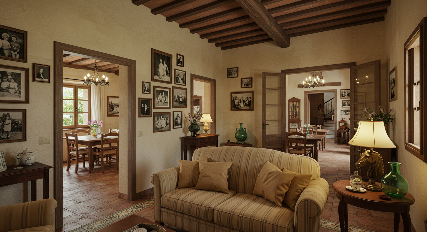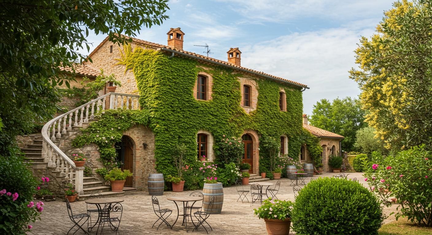 The villa features spacious interiors with a wine cellar, common areas, and a fully equipped kitchen and dining space. Its design blends colonial Italian architecture with wooden accents and terracotta floors, providing a comfortable yet elegant retreat. Outside, guests can enjoy alfresco areas, a courtyard, and a large Mediterranean-style garden perfect for outdoor dining and relaxation.
