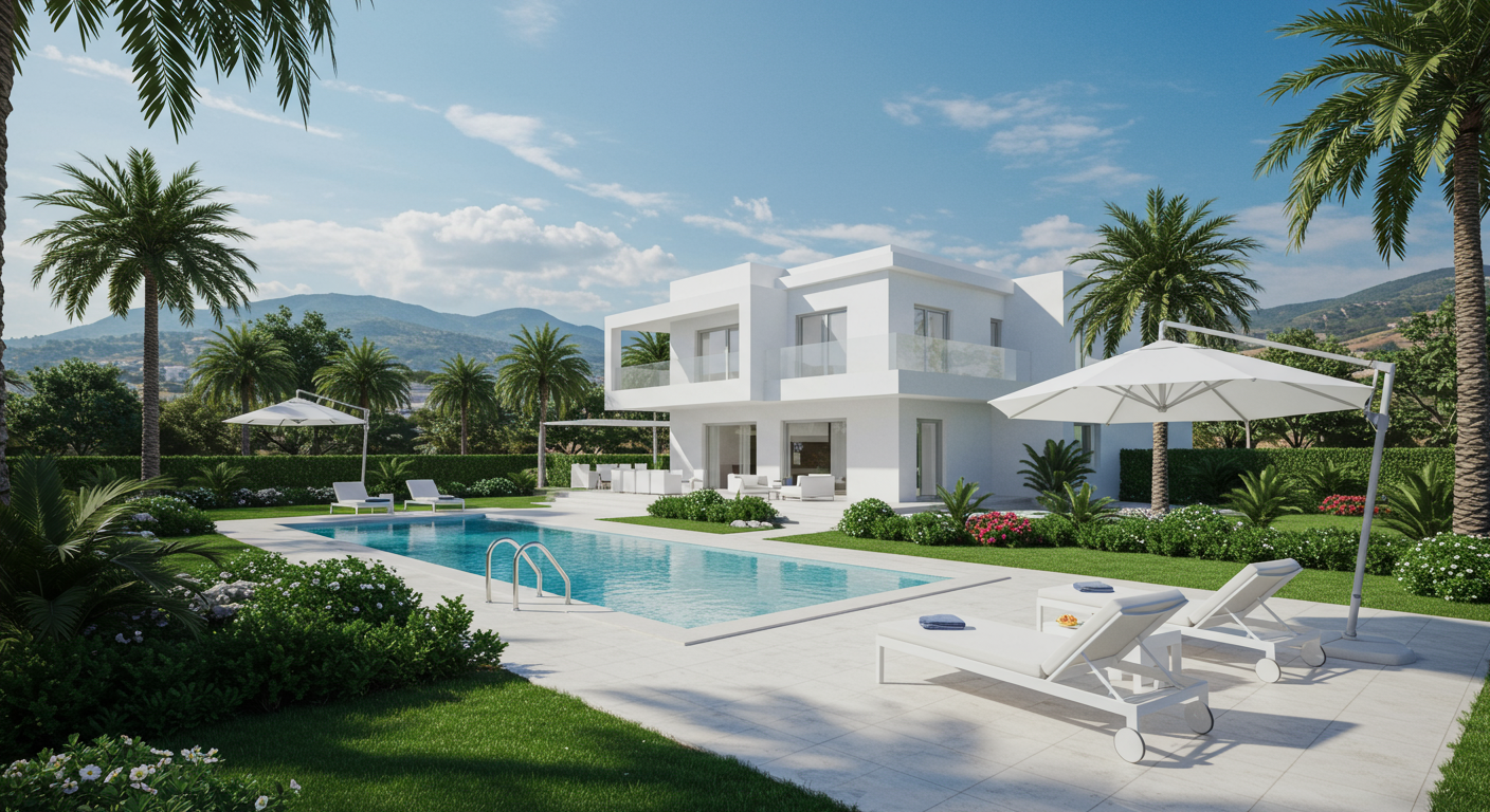 The villa boasts a lush garden with citrus and palm trees, a pool area with sun beds, and an outdoor bar and BBQ spot. A dedicated parking area is shielded by hedges. Atop the building, a rooftop deck hosts a hot tub with panoramic views. The two-story villa features Portugal pink marble and wooden floors, a large open-plan kitchen with Brazilian granite surfaces, two spacious living rooms, and a veranda perfect for meals with natural light. The second floor has four bedrooms, each with a private balcony, offering stunning views of the Gulf of Naples and Vesuvius.