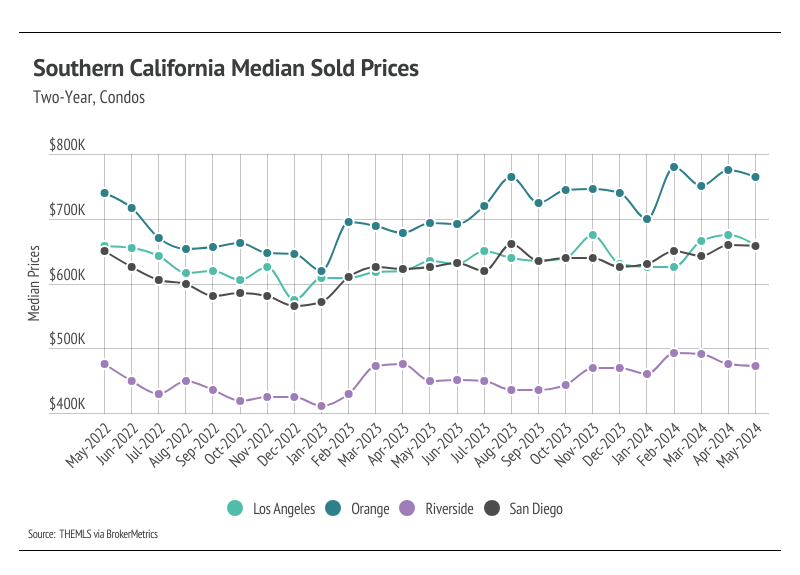 We were hopeful that inventory and new listings would increase after new listings rose 92% month over month in January 2024. However, new listings have yet to grow at the pace needed to bring a significant increase in inventory. The number of new listings coming to market is a significant predictor of sales, and the substantial increase in new listings in January led to a 16% increase in sales in February. In April, new listings rose 13% month over month, and sales rose 5% in May. New listings fell 1%, so we may see sales decline next month. The demand in Southern California is there, but supply — especially new supply — isn’t coming to the market. More supply will mean a healthier market.